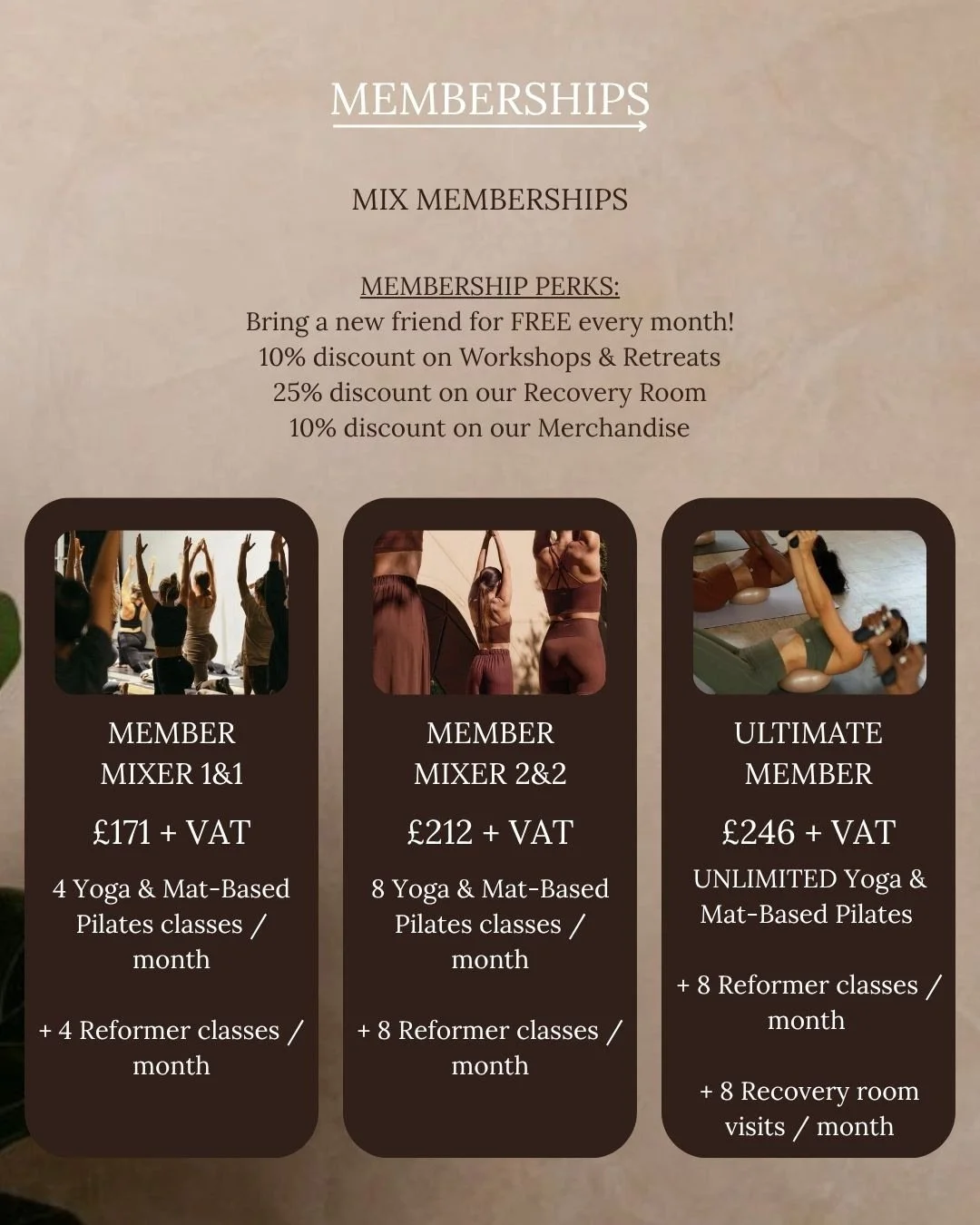 Member-Mixer 1&1: 4 Yoga/Pilates + 4 Reformer/Infrared Yin p/m £171 + VAT